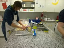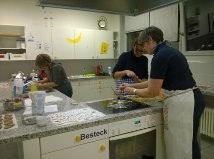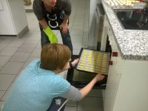 Zuerst besprechen wir kurz zusammen was für Sorten wir machen wollen und jede sucht sich mehr oder weniger eine Sorte aus die er gerne backen möchte. Dann geht es los! Es werden Mixer gestartet, Teige gerollt, Guetzli dressiert, gefüllt, in Schokolade getaucht und ganz viel geschwatzt und gelacht! Die ganze Küche riecht immer verlockender, Weihnachtsduft pur.