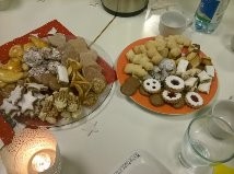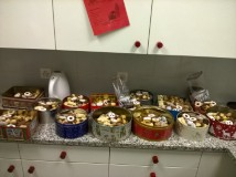 Die einen sind schneller fertig, die anderen haben mehr zu tun aber gemeinsam schaffen wir alle Sorten fertig zu machen um sie dann zu versorgen in den Gutzlibüchsen, die jede mitgenommen hat. Nach dem aufräumen setzen wir uns zusammen und mit finnischem Punsch und Kaffe degustieren wir unser Werk. Müde aber mit einer vollen Guetzlibüchse machen wir uns auf den Heimweg!