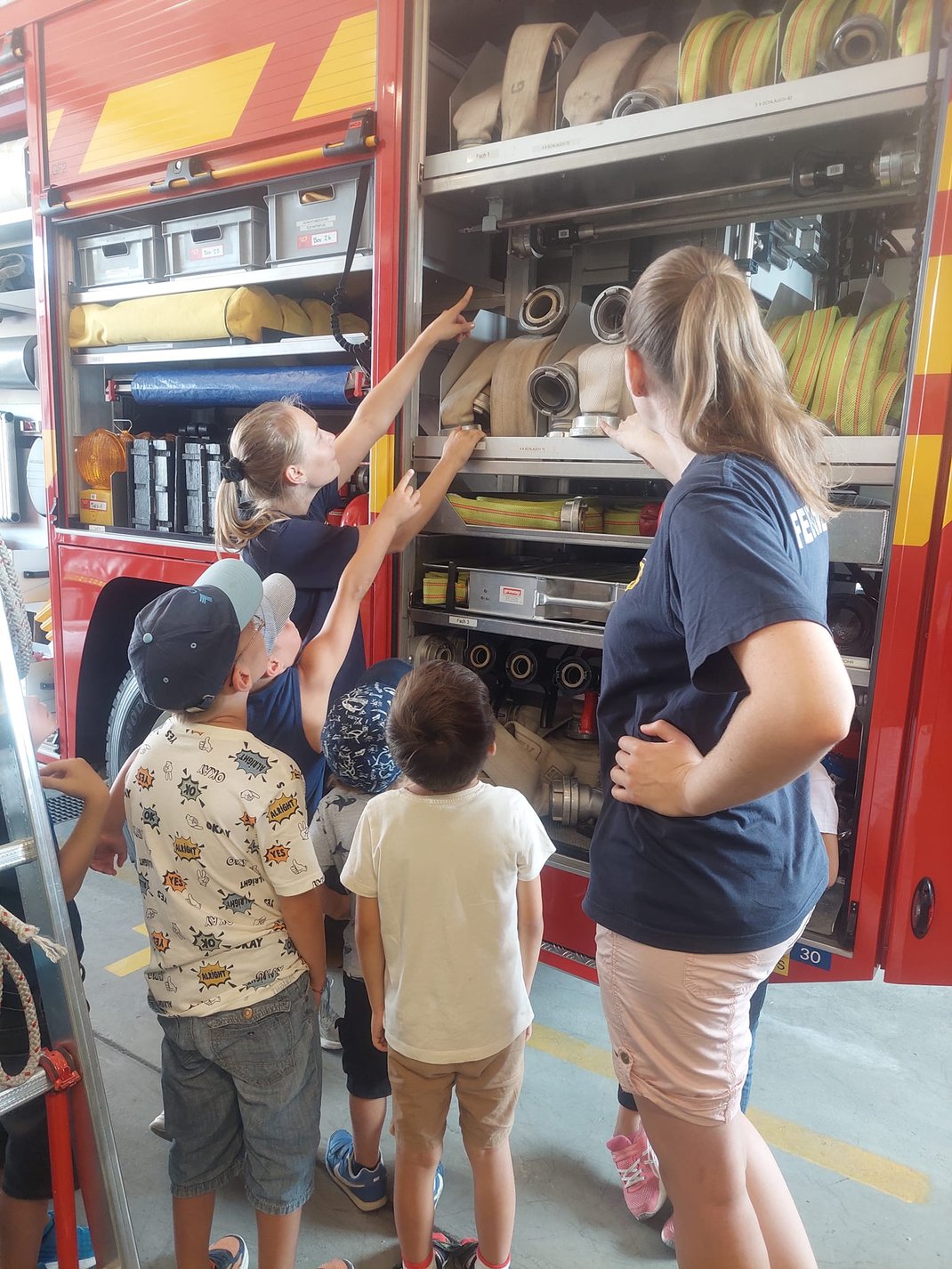 Kinderaugen strahlen. Sich einmal wie ein richtiger Feuerwehrmann oder eine Feuerwehrfrau fühlen… Kurz vor Schluss wurde tatsächlich noch ein richtiger Feuerwehreinsatz ausgelöst. So konnten